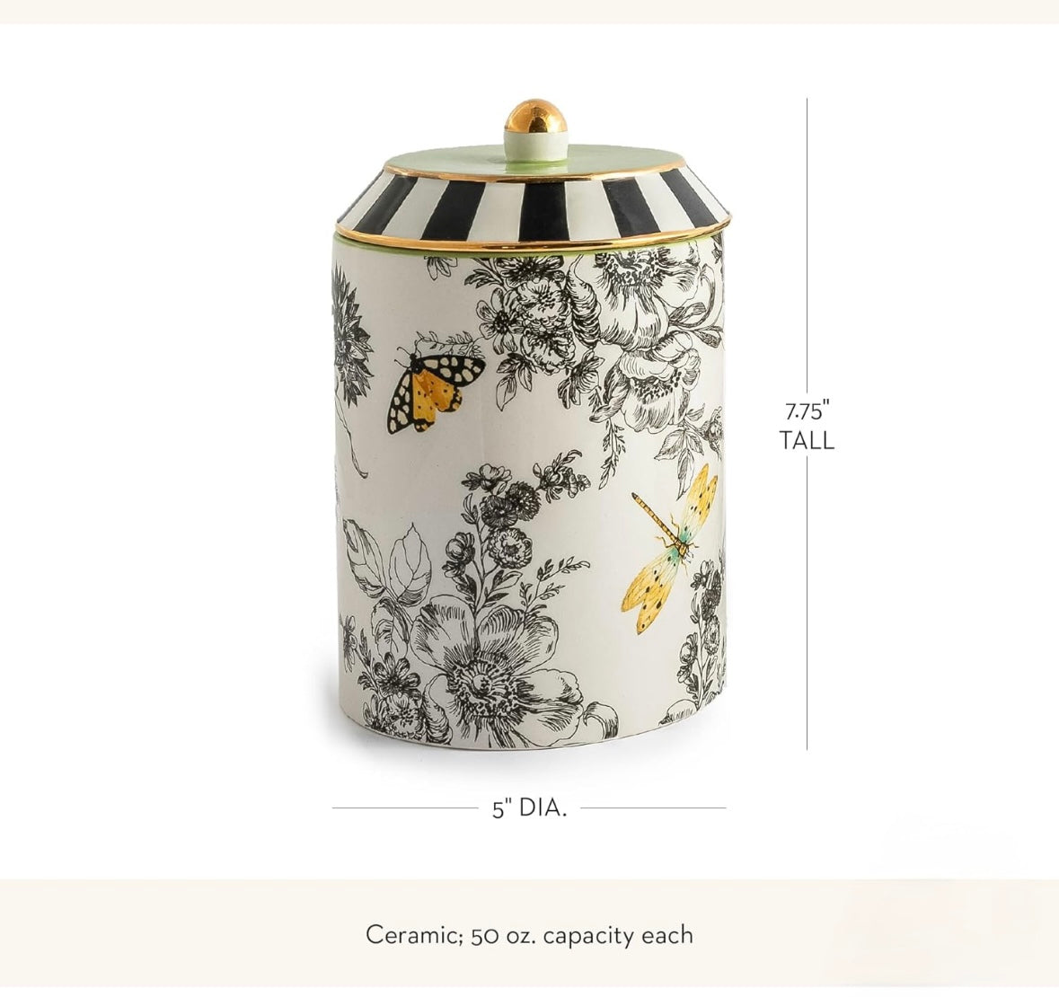 These canisters make wonderful flour containers, sugar containers, small cookie jars, or organization containers. Display a decorative canister in the kitchen, bathroom, or bedroom to store essentials in style