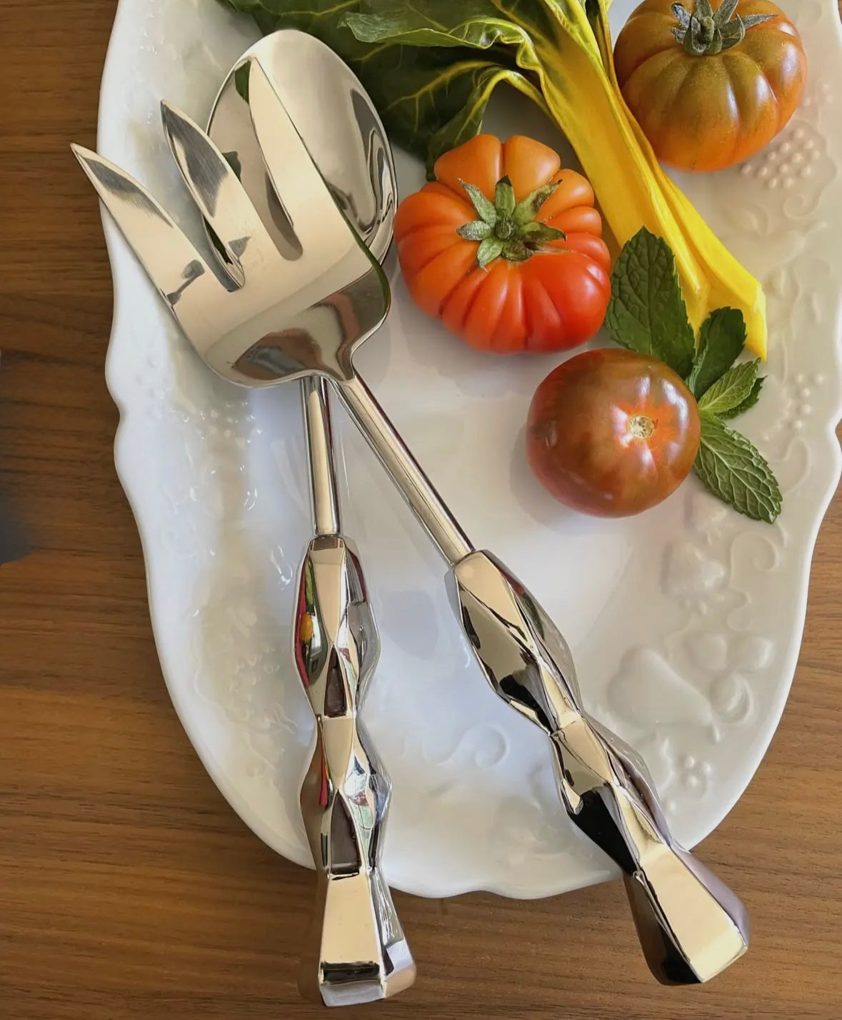 This vegetable spoon & meat fork box set makes a perfect gift, just be sure to get a set for yourself or you may have a hard time letting them go! Comes as a 2 pc. set with box.18/8 stainless steel and nickel plate.Individually crafted.Size: 11"