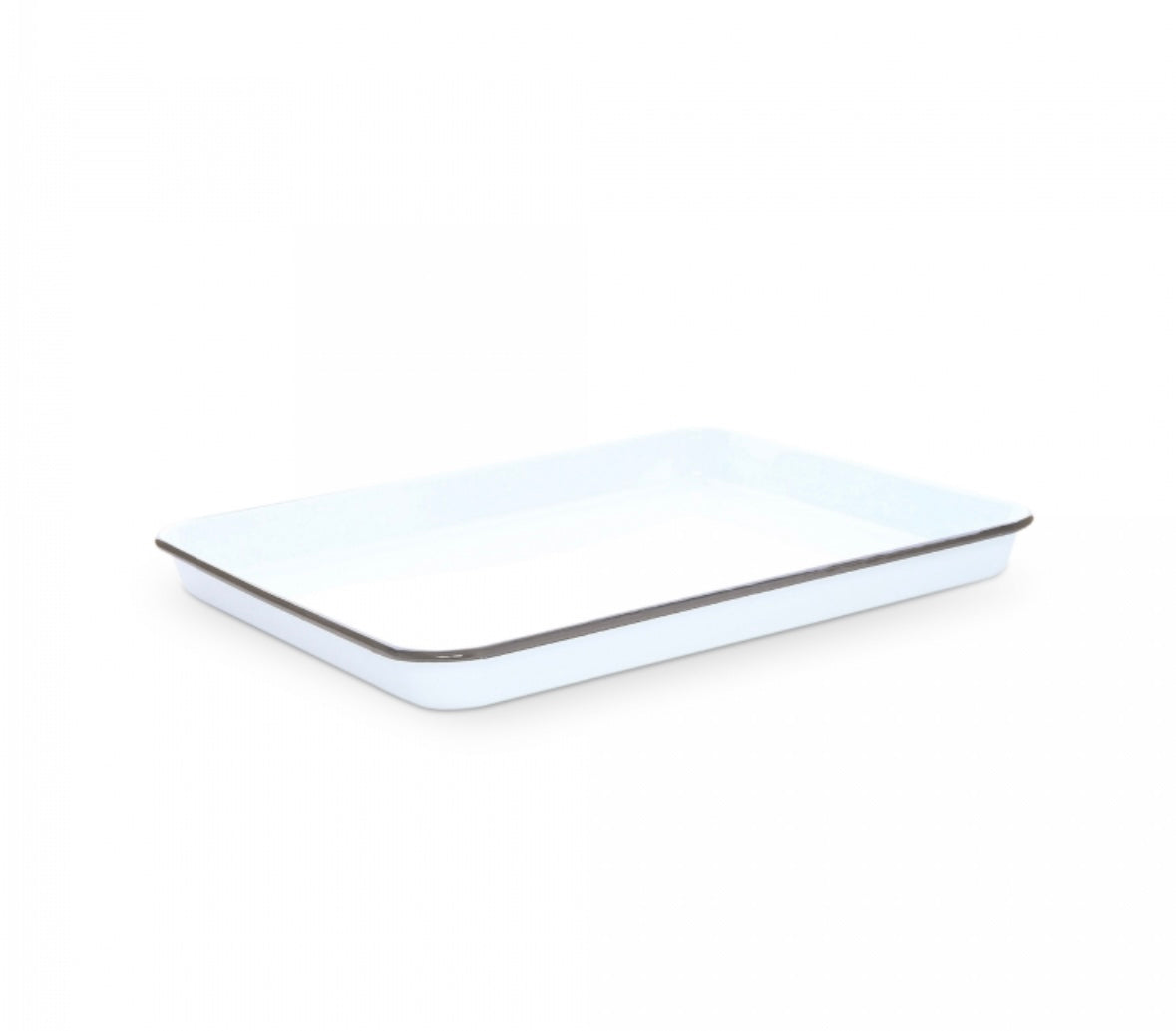 As durable as it is versatile, enamelware has long been a cook’s favorite in the kitchen. It moves easily from refrigerator to oven and stovetop- even to the barbecue or grill. The baked-on porcelain finish makes it easy to clean. 16 x 12.25" rectangle tray / sheet pan.