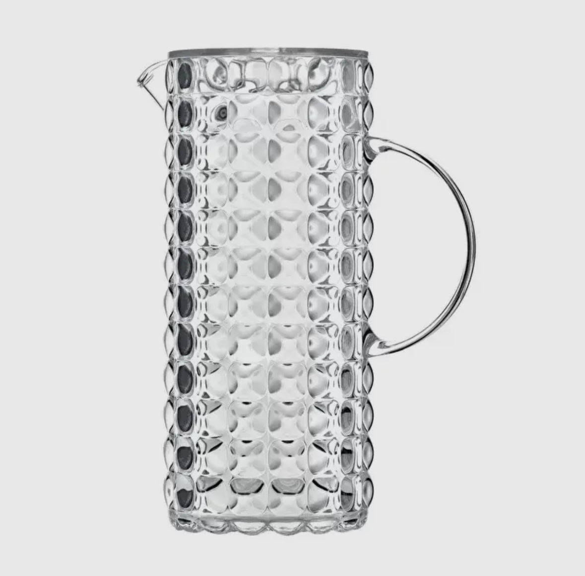 Our most popular pitcher for infused water or iced tea! Easy off lid helps contain ice, fruit and tea bags while pouring. It is perfect for an outdoor meal but also adds a sophisticated touch to the most formal table! Made in Italy from durable, lightweight, shatter resistant SMMA plastic. Dry immediately after washing with a soft cloth