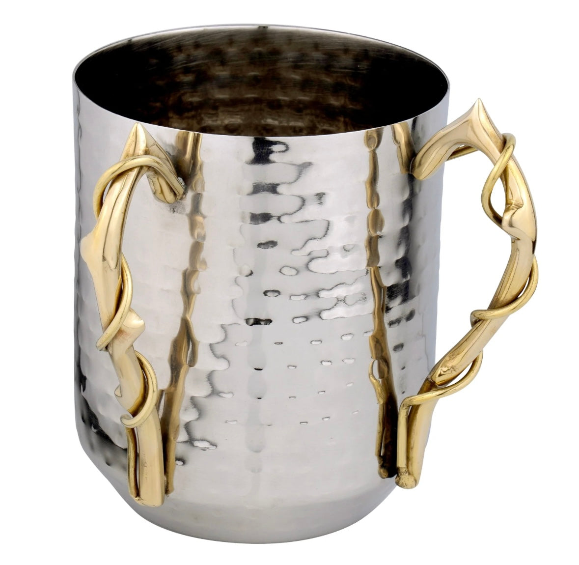 This hammered wash cup with gold design handles will add an elegant flair to your kitchen / bathroom sink. Lightweight!